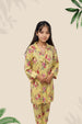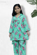 A lovely two-piece girls’ set featuring a collared neckline with a bow detail, long sleeves, and a fresh mint green floral print. Made from soft, breathable fabric with matching pants for a stylish coordinated look.