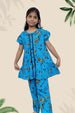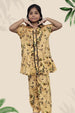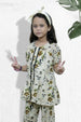 A chic two-piece girls’ set with a peter pan collar, button-down front, and delicate beige floral print. Made from soft, breathable fabric with matching pants for a coordinated style.