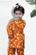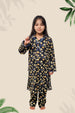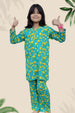 Bright and cheerful, this two-piece girls’ outfit includes a straight kurta with floral print, matching trousers, and delicate lace edging. Designed with soft, breathable cotton for all-day comfort.