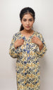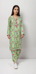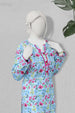 Sky-blue 2 PC with vibrant floral prints, V-cut neckline with button detailing, and matching printed trousers.