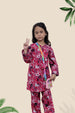 Girls’ black floral suit with V-neck lace trim and yellow button details, paired with matching trousers.