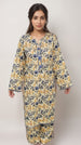 Sky-blue 2 PC with vibrant floral prints, V-cut neckline with button detailing, and matching printed trousers.