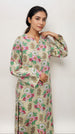 Black 2 PC with floral prints, round neckline with button detailing, paired with matching printed trousers.