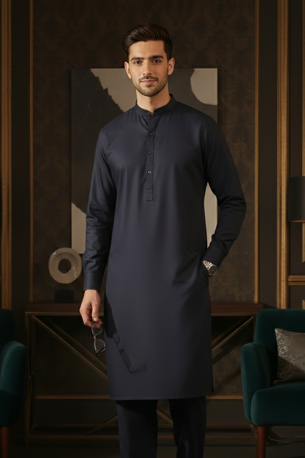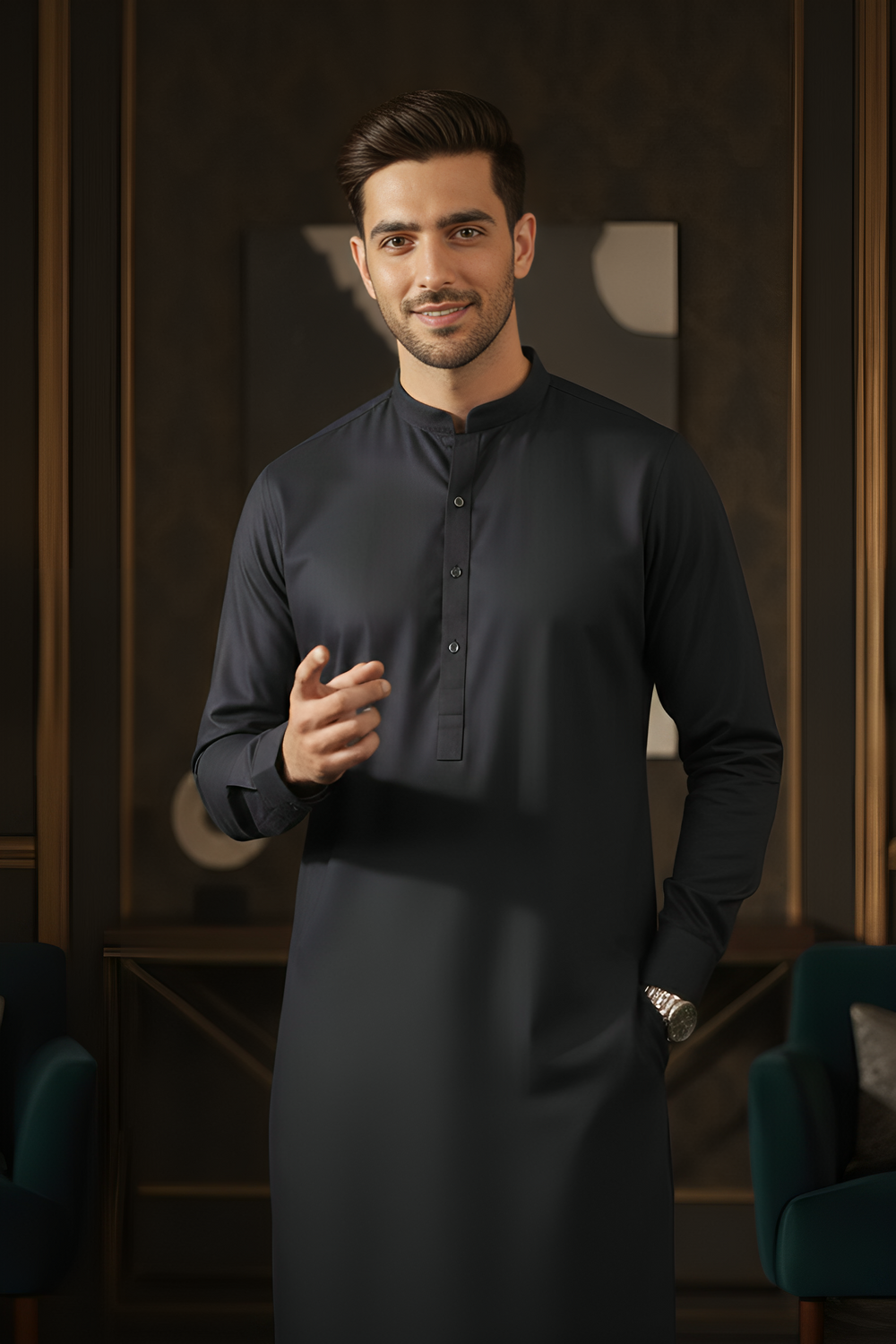Premium blended fabric featuring a Round collar, snap-button placket, and tailored cuff sleeves, delivering a sharp, modern finish with a refined look.