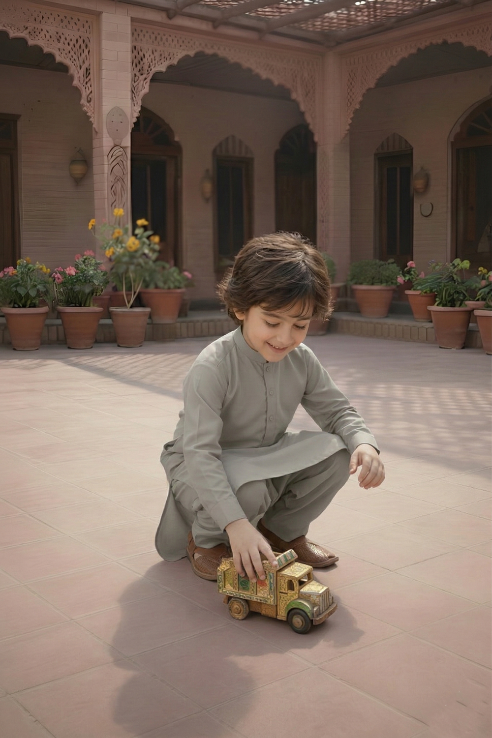 This premium blended shalwar kameez for boys features a classic band collar and regular fit, perfect for a comfortable and stylish traditional look.