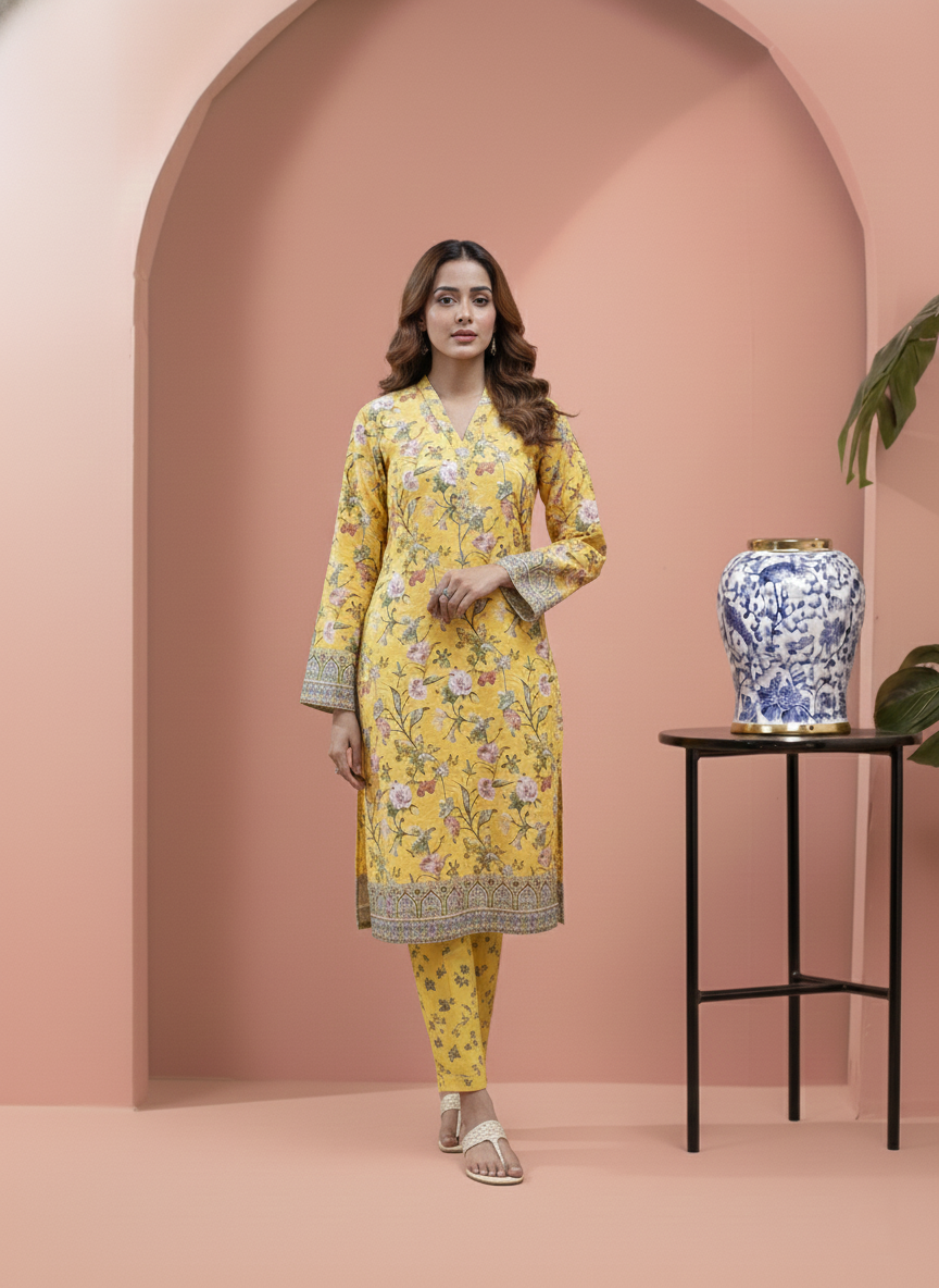 Description: Khaddar set with all-over, paired with a contrasting Khaddar dupatta featuring traditional patterns