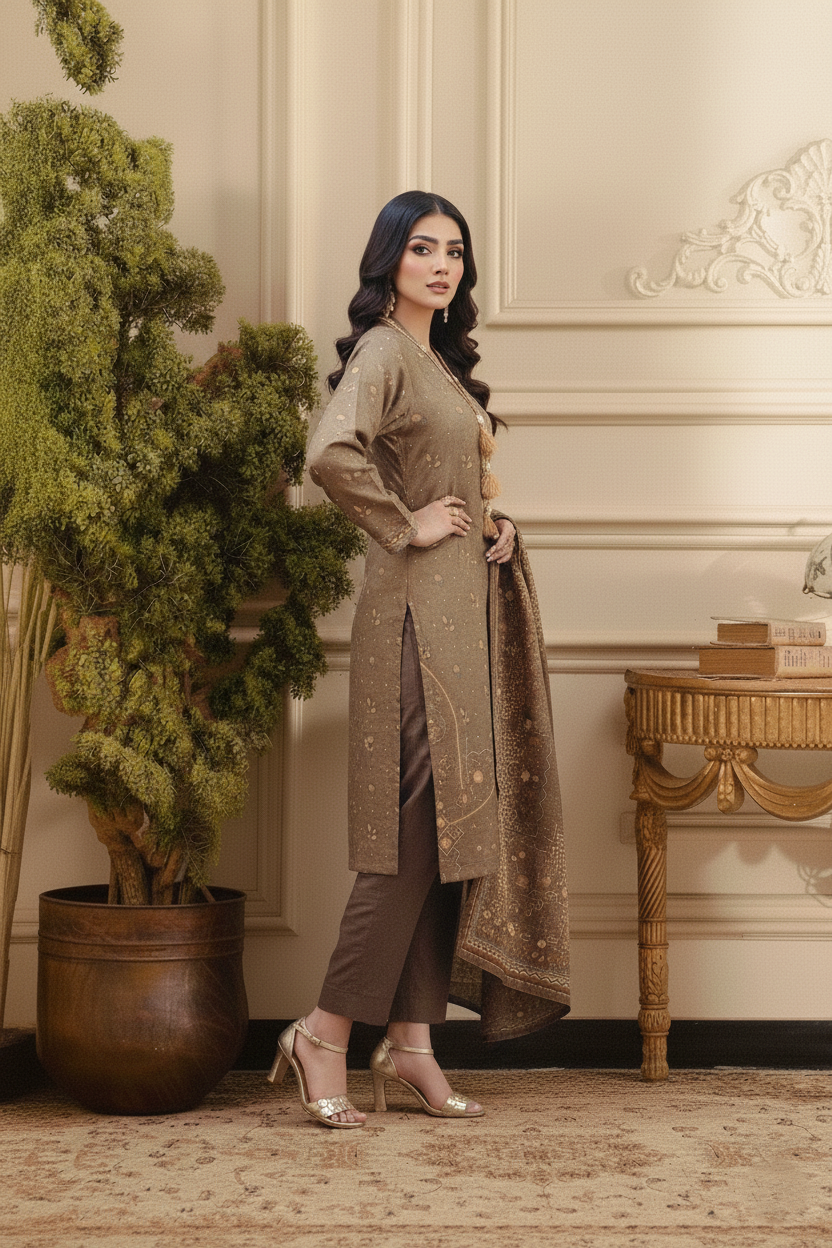 Description: Elegant lawn 3-piece with beautifully front. Soft lawn fabric, classic pattern design, and matching dupatta for a graceful look