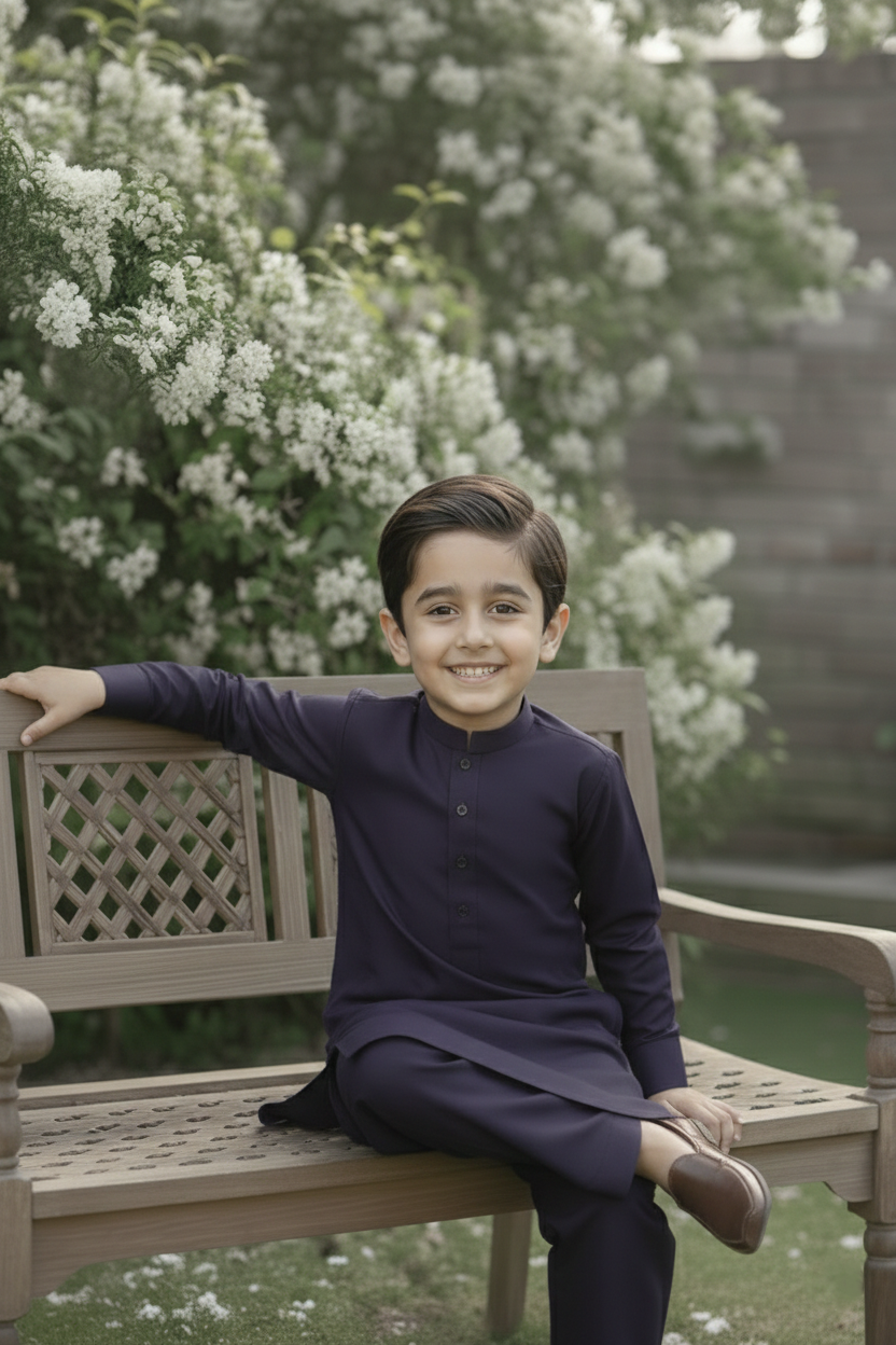 Fabric: Premium Blended Color: Dark Blue Fit: Regular Collar: Band Collar Bottom: Shalwar